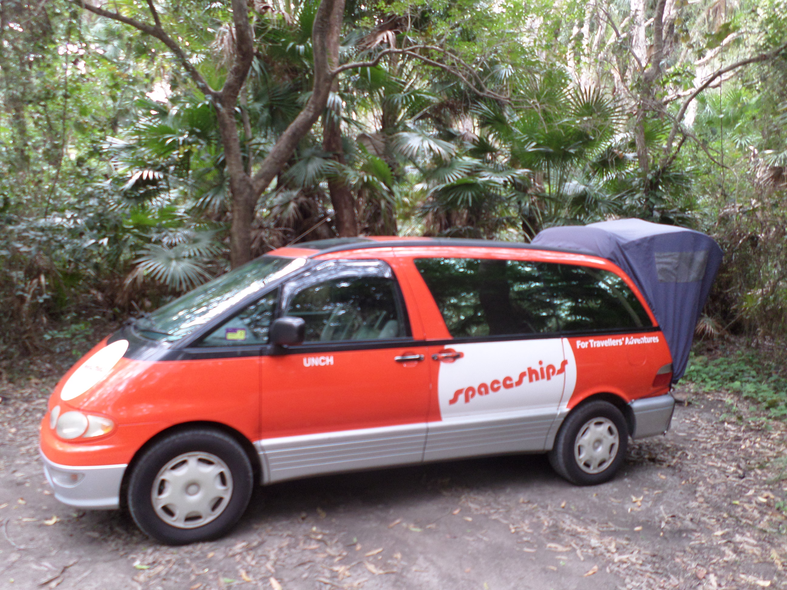 When parked for camping, there’s a canvas dome that can go over the open back door to let in some air. FIY-It’s not the easiest thing to do by yourself. I persevered though!